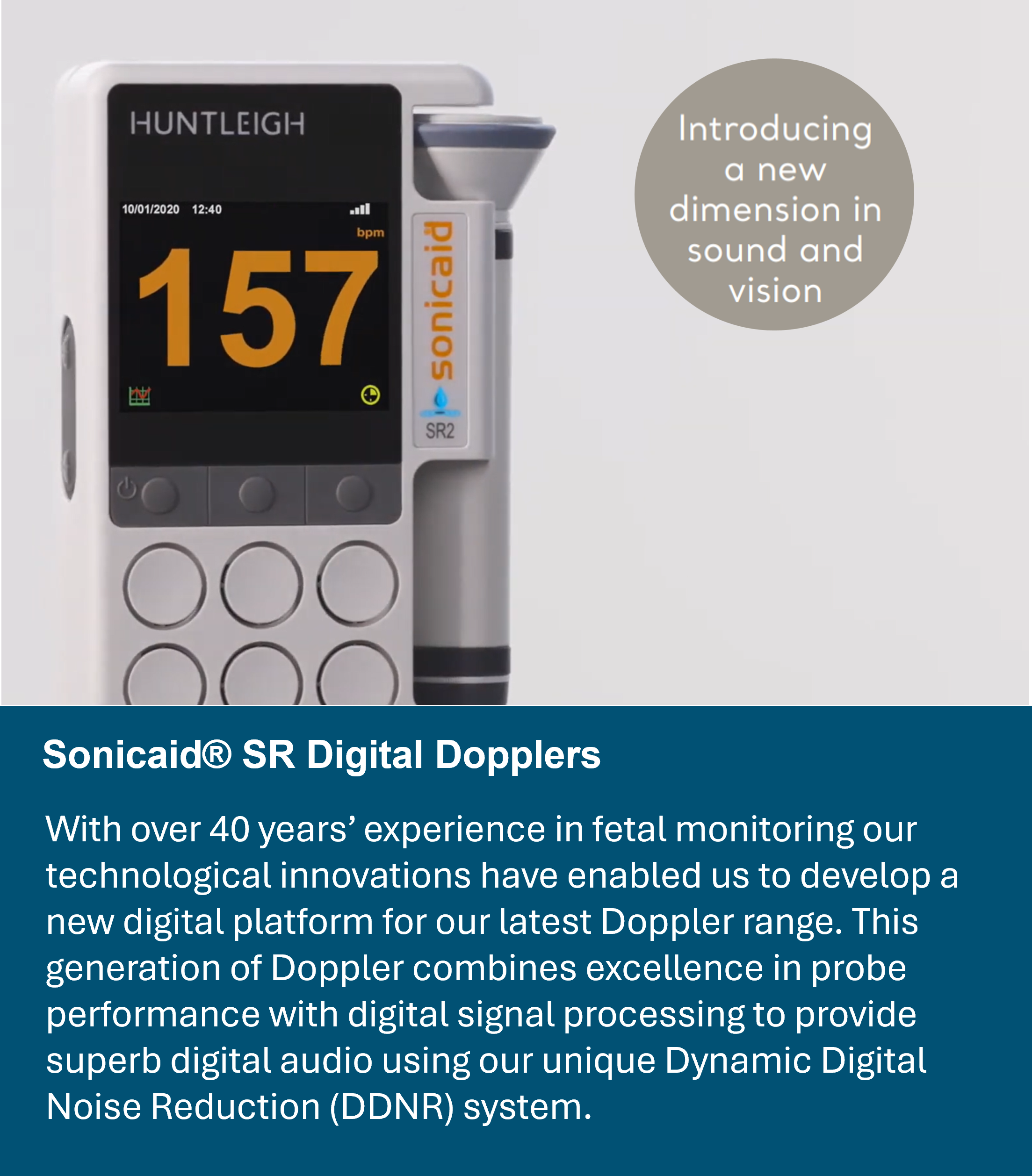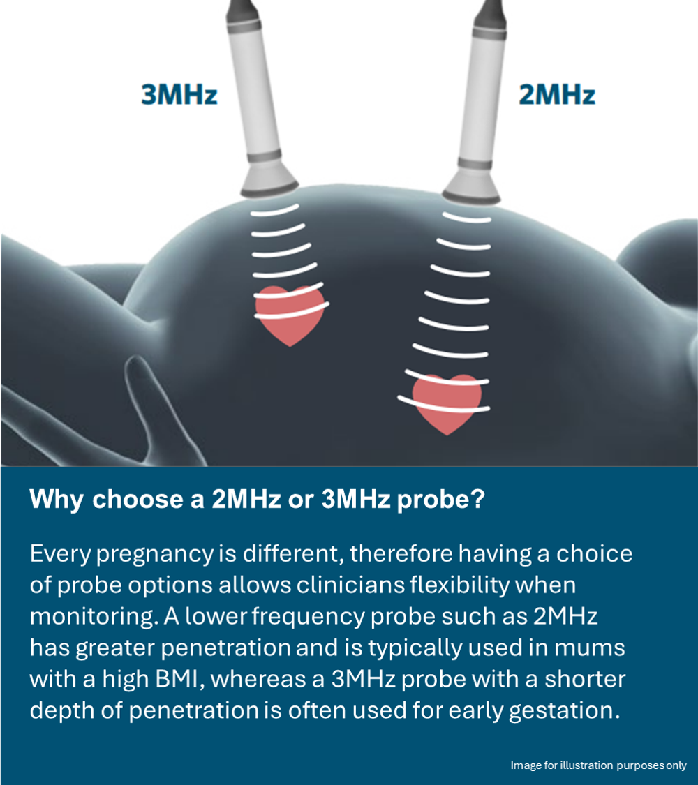 This generation of Doppler aims at excellence in probe performance with digital signal processing to provide a new dimension in digital audio using our unique Dynamic Digital Noise Reduction (DDNR) system. This combines with the unique ability to visualise the fetal heartbeat trace.